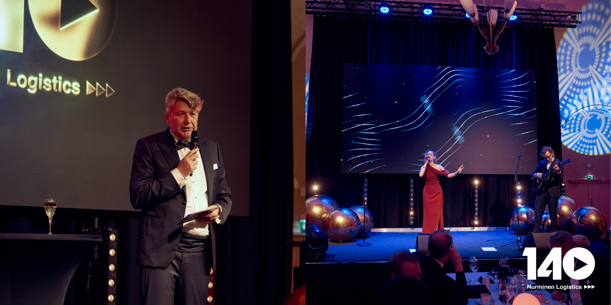 The event featured a range of engaging speeches, including one delivered by Juha Nurminen, a fourth-generation member of the John Nurminen family and former CEO, who took the audience on a journey through fascinating historical turning points. The evening was topped off by an energetic performance by singer-songwriter Nelli Matula.
