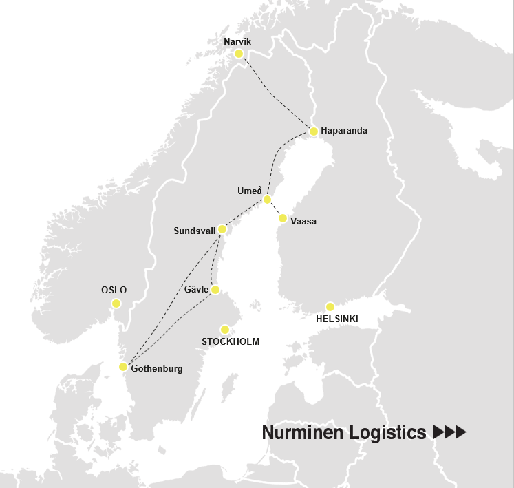 The Finnish logistics company, Nurminen Logistics, is continuing its strategy of international growth by opening a new rail connection in Sweden, in co-operation with VÄTE Rail AB, from Haparanda and Umeå to Gothenburg, the largest port in the Nordic countries. Nurminen is also establishing a subsidiary in Gothenburg.