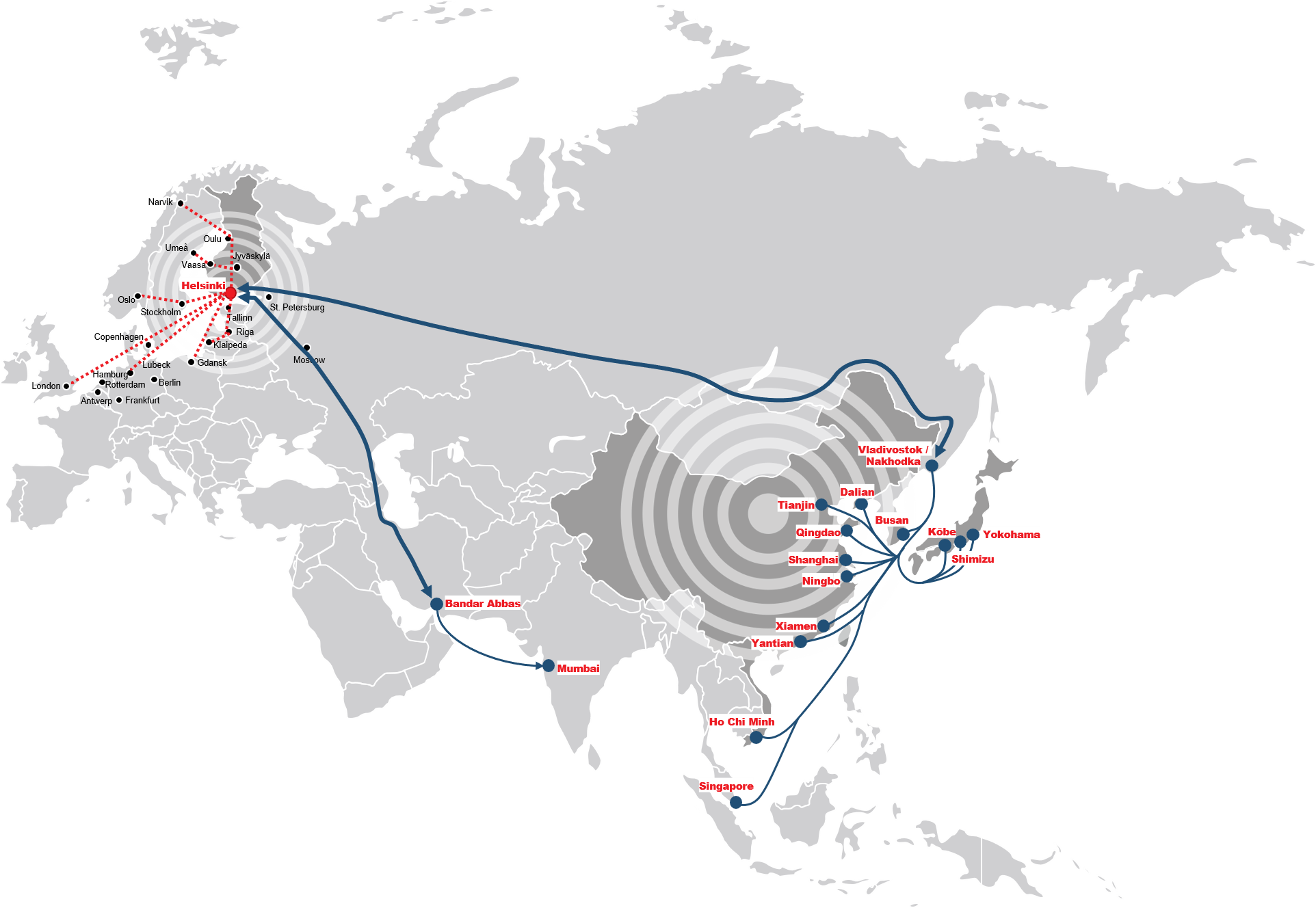 Junarahtia tullaan kuljettamaan joka viikko Kiinasta, Japanista ja Koreasta Vladivostokin kautta Helsinkiin ja muihin Pohjoismaihin.